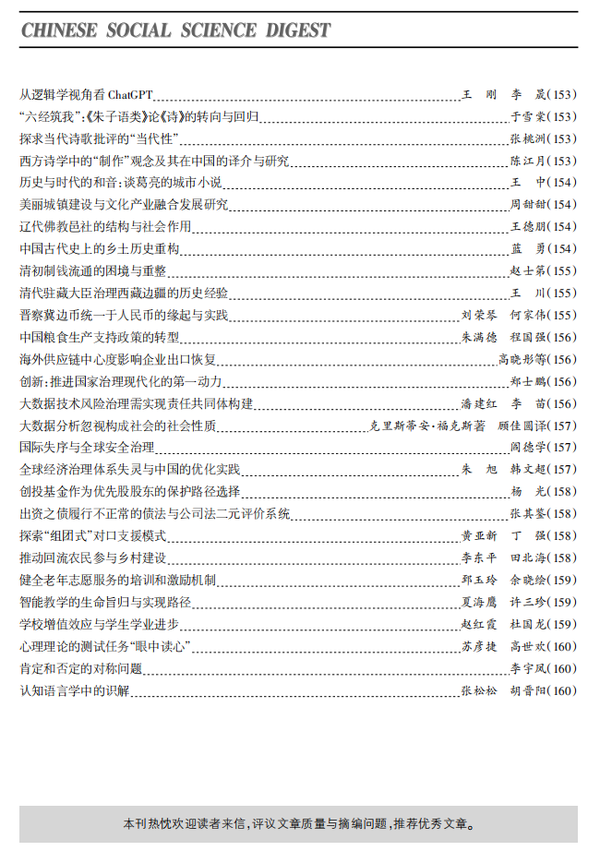 学术发表|捷克论坛 阎德学老师《国际失序与全球安全治理》论点摘要获《中国社会科学文摘》2024年第2期转载