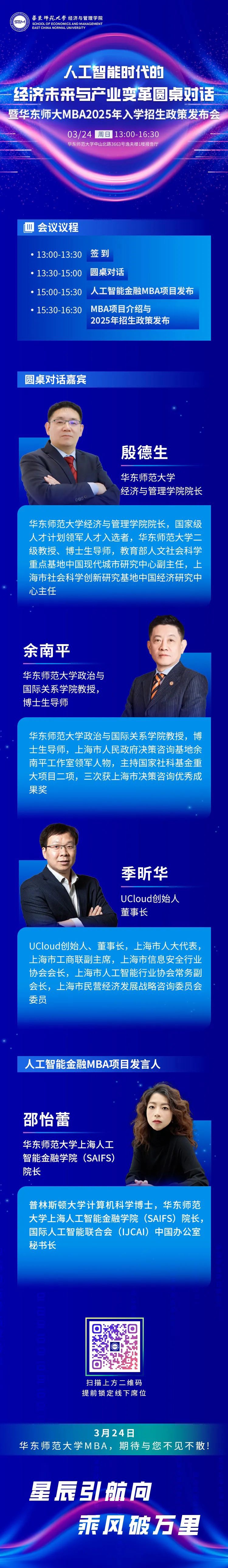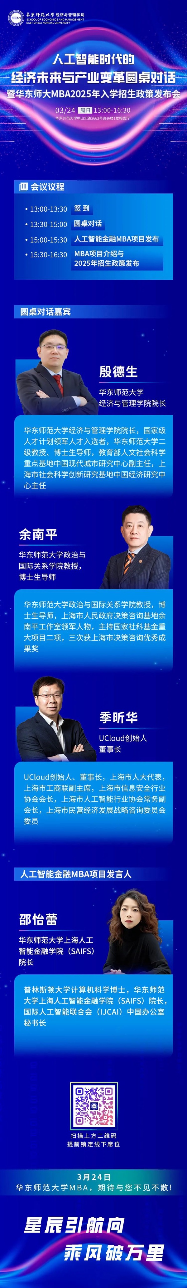 活动预告|余南平教授将参加人工智能时代的经济未来与产业变革圆桌对话暨华东师大MBA2025年入学招生政策发布会