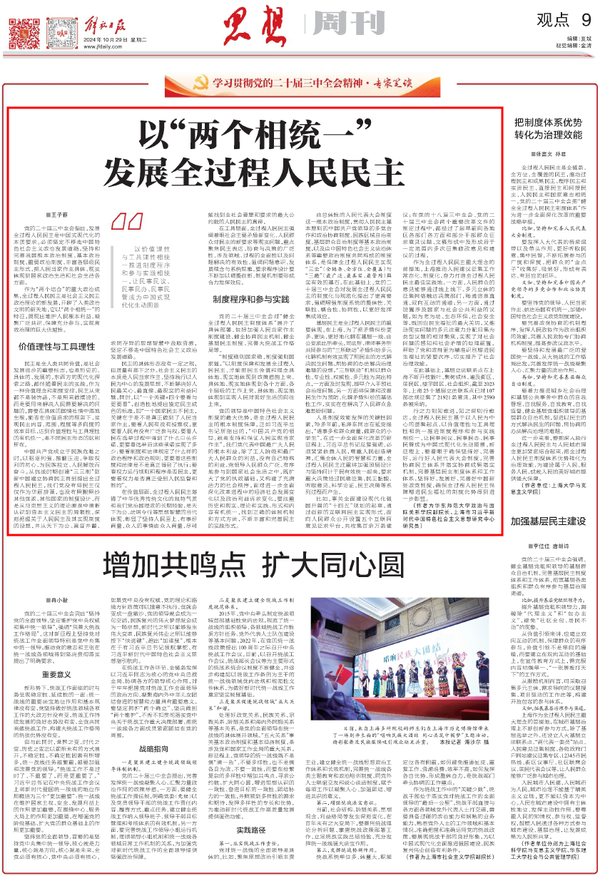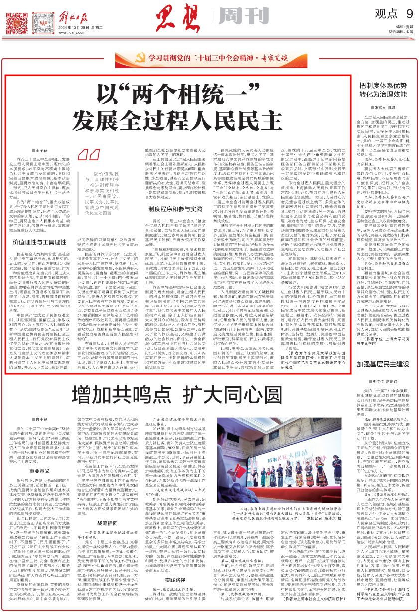 媒体视野|王子蕲副教授在《解放日报》发表理论文章《以“两个相统一”发展全过程人民民主》