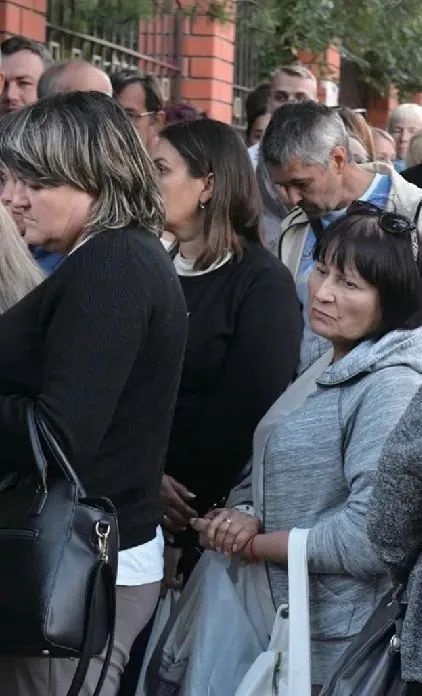 8月13日,在俄罗斯库尔斯克市,来自俄乌边境地区的居民排队领取救援物资。