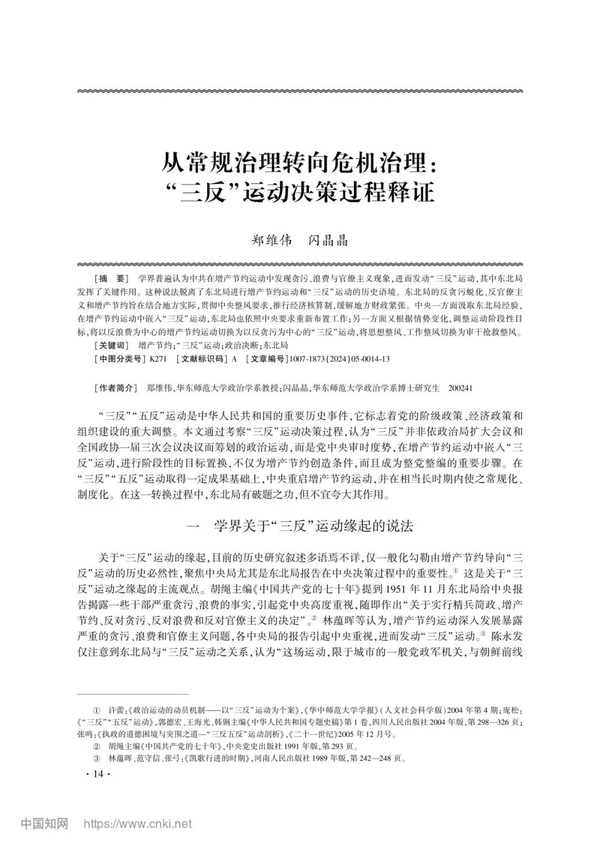 学术发表︱郑维伟 闪晶晶:从常规治理转向危机治理:“三反”运动决策过程释证