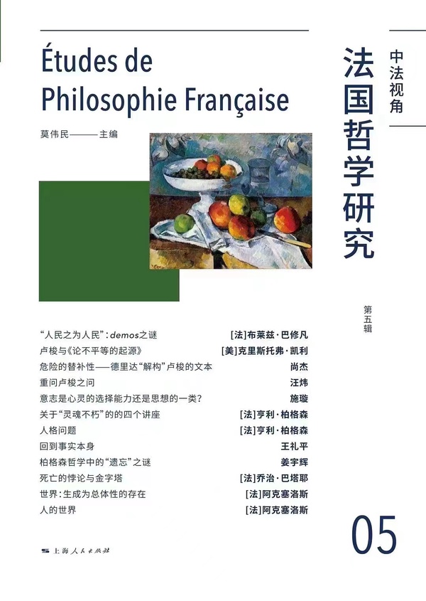 《法国哲学研究》是由复旦大学哲学学院教授、博士生导师,教育部长江学者特聘教授莫伟民主编的法国哲学学术论文集,一年一辑,今年已出至第五本。本书共收录31篇文章,其中译作有7篇,包括2篇卢梭政治思想研究,2篇柏格森的公共演讲,1篇巴塔耶对埃德加•莫兰《人与死亡》一书的评论,2篇节选自科斯塔斯•阿克塞洛斯《系统性开放》(Systématique ouverte)一书的文章;24篇来自国内学者,他们围绕卢梭、德勒兹、笛卡尔、利科、梅洛-庞蒂等人的思想进行了多方向、多领域的深层探讨。