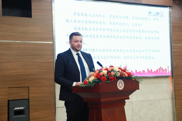 白俄罗斯驻沪领事戈洛夫卡在致辞中指出,本次活动是在白中两国关系处于历史最好水平的背景下举行的。今年3月初,白中两国发表了关于新时代进一步发展两国全天候全面战略伙伴关系的联合声明,双边关系实现了历史性跨越,是新型国际关系的典范,两国在各领域的合作都有很大的发展潜力。白俄罗斯是实施"一带一路 "倡议的重要平台,在保障中欧班列稳定、持续运营方面发挥着关键作用。白中 "巨石"工业园是两国合作发展规模最大、最具代表性的范例。他表示,白俄罗斯正朝着成为上合组织正式成员国的方向稳步前进。今天的活动十分有益,将为以后的合作创造更多机会。他祝愿暑期学校和白中两国间的合作都能取得丰硕成果。