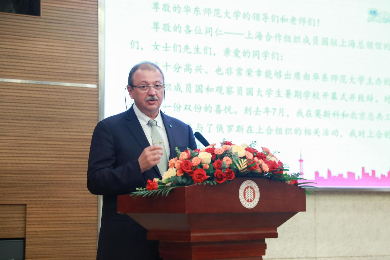 戴立益在致辞中指出,包括教育在内的人文交流合作是上合组织最重要的活动方向之一。人文交流合作以其丰富多彩的形式和润物无声的优势,成为连接民心相通的纽带和桥梁。上合暑期学校正是这样一条纽带、这样一座桥梁。十多年来,在各方的大力支持和配合下,暑期学校举办顺利,成效丰富显著。活动也成为了华东师大国际交流合作的一张名片、学校校园文化中的一道亮丽风景。他祝愿学员们能在暑期学校收获知识与友谊,在上海、在华东师大度过一段美好的时光。