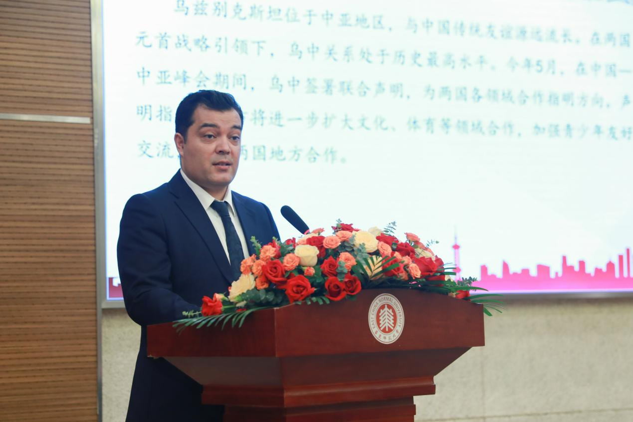 乌兹别克斯坦驻沪领事拉赫蒙诺夫在致辞中表示,位于中亚地区的乌兹别克斯坦,与中国的友谊源远流长。在两国元首战略引领下,乌中关系处于历史最高水平。上合暑期学校对于深化两国青年的友谊和促进人文交流都具有重要意义,希望以这次活动为契机,进一步推动乌中教育文化领域交流合作的发展,并预祝暑期学校圆满成功。