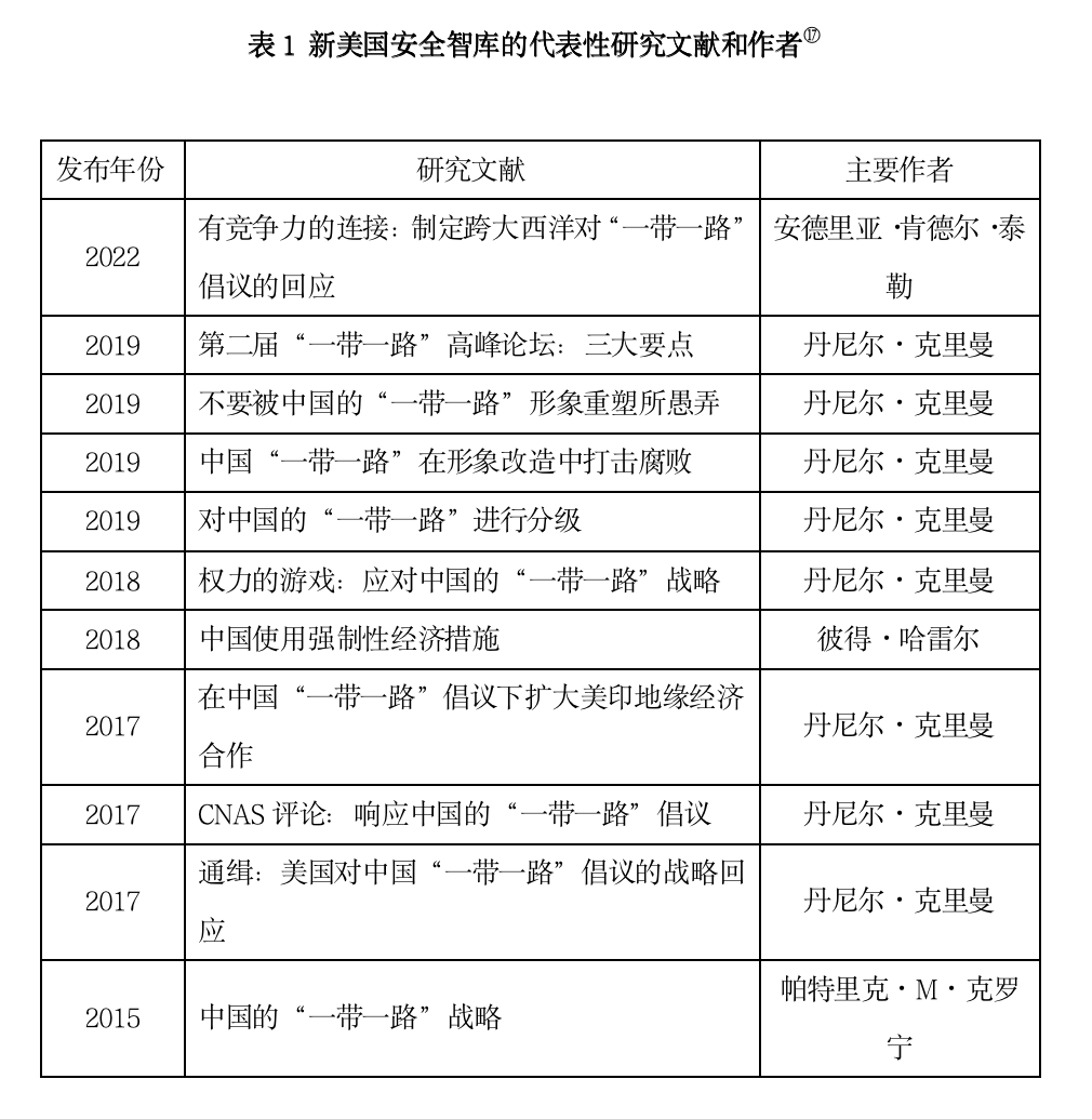 “一带一路”倡议;中美关系;美国智库;新美国安全中心